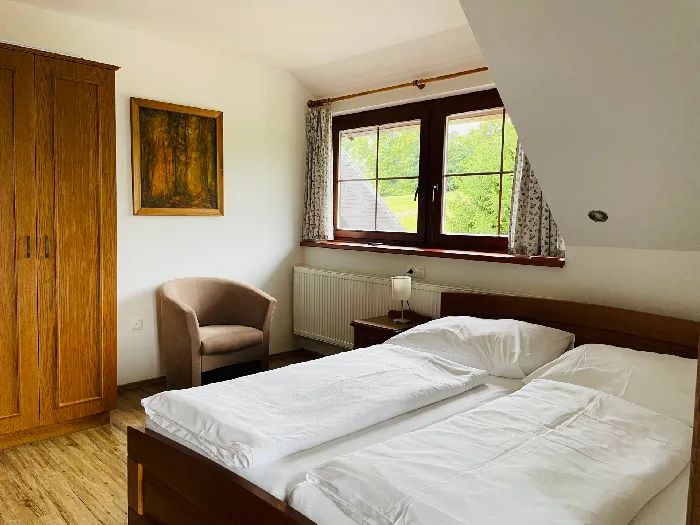 Penzion Pod Drátníkem na Vysočině poskytuje komfortní ubytování v malebné krajině CHKO Žďárské vrchy, ideální pro rodinnou dovolenou i pro pořádání větších skupinových akcí, jako jsou oslavy či svatby. Pro ubytované hosty je možné po předchozí rezervaci zajistit večeře. Penzion se nachází v klidné lokalitě, mimo hlavní silnici, což zaručuje bezpečné prostředí pro děti a nerušený pobyt. K dispozici je dostatek parkovacích míst přímo u penzionu.Hosté mohou využít plně vybavenou společenskou místnost s kuchyňským koutem. Pro děti je připravena vnitřní herna a venkovní hřiště s houpačkami a skluzavkou. K relaxaci slouží privátní finská sauna a vnitřní relaxační bazén s protiproudem, který je k dispozici v podzimních a zimních měsících. Okolí penzionu vybízí k pěší turistice, cyklistice a v zimě k běžeckému lyžování na upravené trase. Odpoledne je otevřen bar s nabídkou nápojů a dezertů.