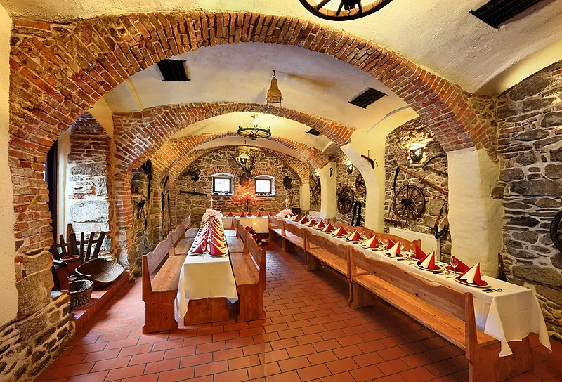 Hotel U Martina se nachází v centru malebného Rožmberku nad Vltavou, v zrekonstruované historické budově ze 13. století. Leží přímo na břehu Vltavy a nabízí letní terasu s obsluhou, odkud se otevírá nádherný výhled na jihočeskou krajinu a romantický hrad Rožmberk. Je ideálním místem pro svatby a oslavy, kde si hosté mohou užít jedinečnou atmosféru. Pro svatební hostiny je možné připravit nevšední rautovou hostinu s dřevěnou selskou dekorací dle přání. K dispozici je také vyhrazené místo pro grilování a ohniště. Hosté mohou využít soukromé wellness studio s vířivou vanou, saunou a infrasaunou, hotelové infocentrum pro plánování výletů a soukromé parkoviště u hlavní budovy.