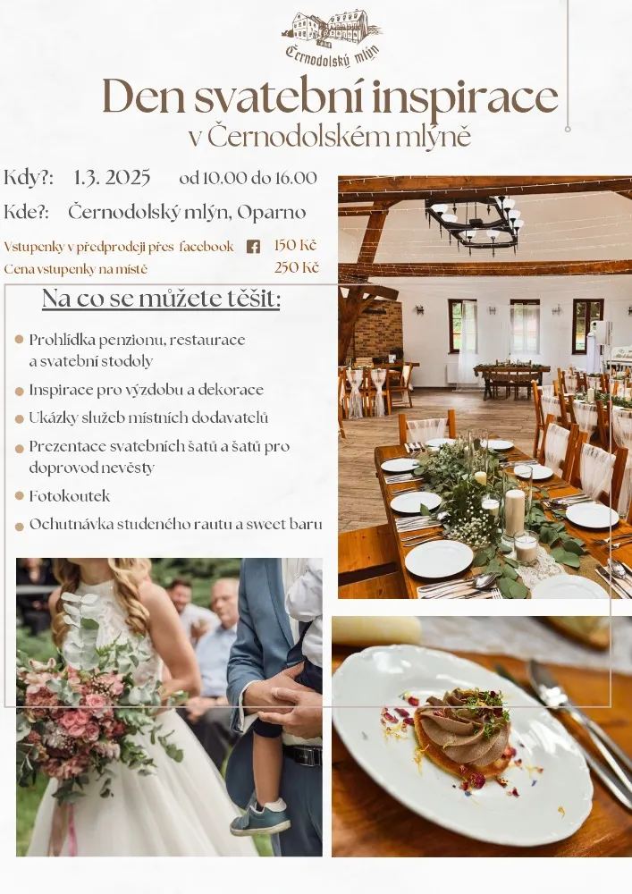 Černodolský mlýn nabízí pohádkové ubytování uprostřed hlubokých lesů, kde zurčení potoka vytváří ideální prostředí pro klidnou dovolenou. Areál je vhodný pro pořádání malých i velkých svateb, rodinných oslav a firemních školení po celý rok. Poskytuje veškeré služby na jednom místě, což eliminuje potřebu přejíždění mezi lokalitami.Pro romantické svatby je k dispozici kompletní servis na klíč, včetně obřadu v přírodě, celodenního cateringu a ubytování. Akce lze uspořádat v restauraci u krbu, v krásném velkém sále nebo pod širým nebem. Ubytování je možné přímo v areálu nebo v nově zrekonstruovaném apartmánovém domě pět minut chůze od mlýna. Kapacita pro velké víkendové svatby je od 70 dospělých osob, pro jiné akce až 50 osob.