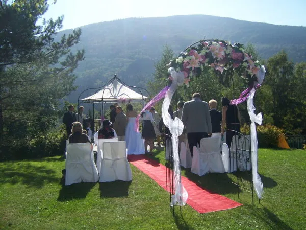 Zámecký Hotel Zlatý Orel Ostravice je rodinný horský hotel v obci Ostravice, pod Lysou Horou v Beskydech, 40 km od Ostravy. Nachází se uprostřed rozlehlé zahrady s nádherným výhledem do okolí, což vytváří ideální prostředí pro svatby a oslavy v klidné přírodě. Areál nabízí krásnou zahradu s jezírkem, posezením a altánkem, perfektní pro svatební fotografie. Hosté mohou využít i dětské hřiště a venkovní posezení s grilem.Svatební obřad lze uspořádat uvnitř v dobových salóncích nebo venku. Velký sál pojme 45 osob, Rothschildův salónek 10 osob a Čajový salónek 25 osob, vhodný i jako herna. Hotel poskytuje ubytování pro svatební hosty v 18 pokojích s celkovou kapacitou 45 míst, včetně novomanželského apartmá. K dispozici je wellness zóna s finskou saunou a šungitovou jeskyní. Hotel nabízí parkování pro 20 aut, Wi-Fi a možnost exkluzivního pronájmu celého areálu.