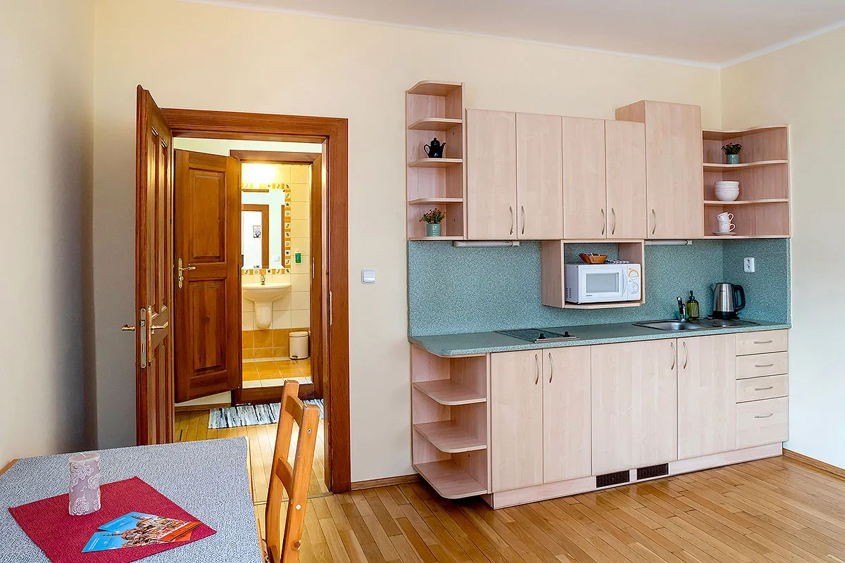 Každý pokoj je standardně vybaven vlastním sociálním zařízením se sprchovým koutem, televizí se satelitním příjmem a bezplatným WIFI připojením. Apartmán navíc disponuje kuchyňským koutem. V ceně ubytování jsou zahrnuty snídaně, které se podávají v restauraci Maštal.