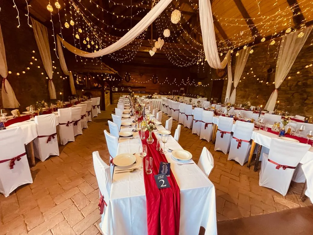 Staročeská stodola v Chrášťanech nabízí prostory pro pořádání svateb a dalších událostí s kapacitou pro 95 osob, kterou lze rozšířit až na 140 hostů. K dispozici je zahrada ideální pro svatební obřady, doplněná zahradním altánem a lavicemi pro přibližně 90 lidí. Areál disponuje také kompletně zařízeným barem s čepovacím zařízením pro až pět druhů nápojů. Pro hosty je zajištěno ubytování v karavanech pro 27 osob a v samostatné místnosti pro 4 osoby se sociálním zařízením. V rámci areálu je k dispozici také parkování.
