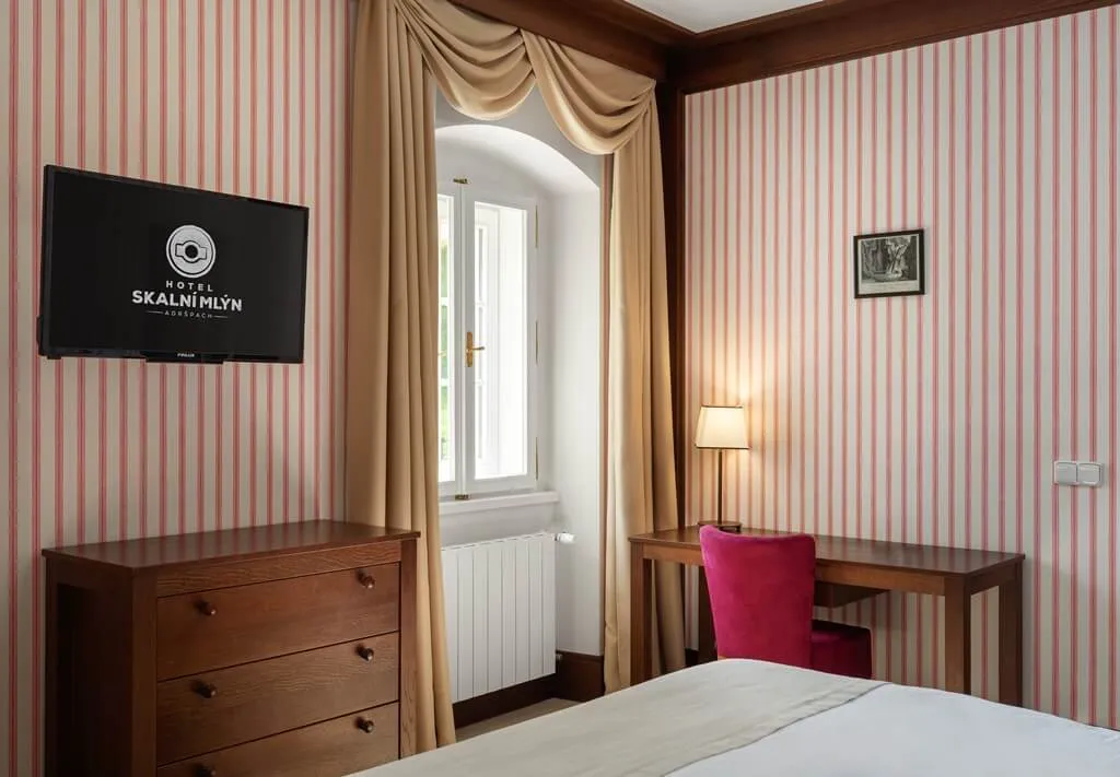 Hotel Skalní Mlýn Adršpach se nachází v klidném prostředí uprostřed přírody, strategicky umístěný mezi Adršpašským a Teplickým skalním městem. Tato citlivě zrekonstruovaná budova, původně mlýn z roku 1770, nabízí ubytování s rodinnou atmosférou a nádechem starého Broumovska. Je ideálním místem pro odpočinek a objevování krás okolní krajiny.