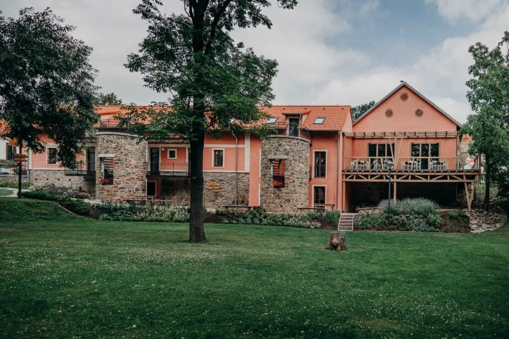 Pro svatební hostinu tým kuchařů připraví menu dle vašich představ, od klasických pokrmů po vegetariánské, veganské, bezlepkové či bezlaktózové varianty, včetně exotických specialit. Vybrat si lze ze servírovaného menu, rautu nebo grilovaných jídel. Ubytování je zajištěno v 44 pokojích a apartmánech s celkovou kapacitou 103 lůžek a 27 přistýlek. Novomanželé mohou využít jedno z originálních svatebních apartmá, některá s vířivkou či balkonem. Součástí areálu je také vinný sklípek pro 20 hostů, sauna a vířivka.